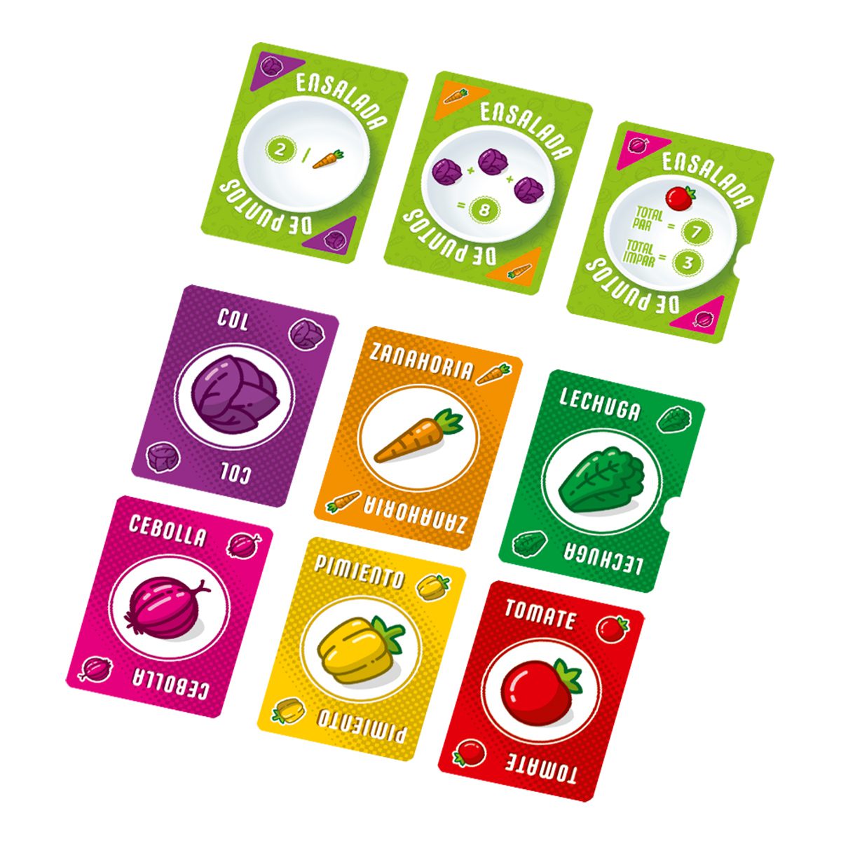 Ensalada de Puntos es un juego de cartas rápido, fresco y altamente rejugable donde cada carta puede usarse como ingrediente o como una regla de puntuación. Construye tu mejor combinación, adapta tu estrategia en cada turno y crea una ensalada que te dé la mayor cantidad de puntos posible.