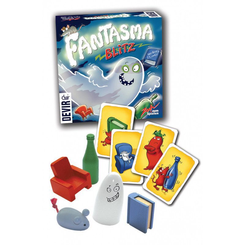 Fantasma Blitz es un juego de mesa de reflejos y observación donde la rapidez mental lo es todo. En cada turno, se revela una carta que muestra objetos y colores. Solo quien identifique primero el objeto correcto (o el que no aparece en absoluto) podrá agarrarlo y ganar la ronda. 🧠⚡