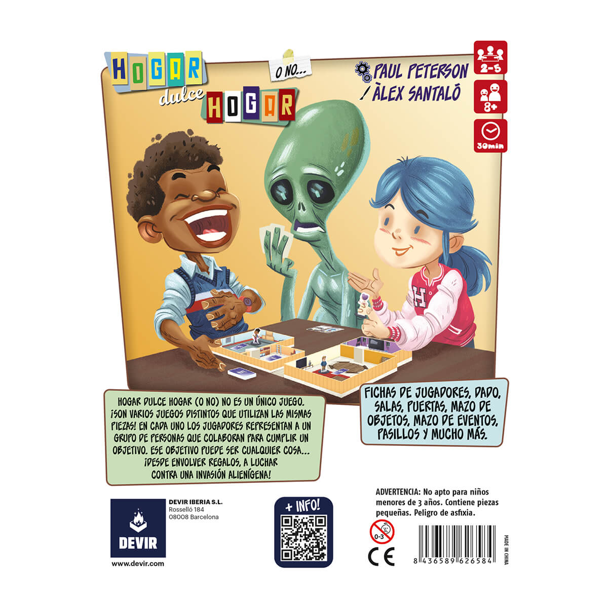¡Bienvenidos a la casa más loca del vecindario! Hogar, Dulce Hogar... o no es un juego cooperativo único donde las propias cajas del juego se convierten en las habitaciones de la casa. Tu misión, junto a tu equipo, será poner orden en el caos siguiendo los desafíos de diversos escenarios.
