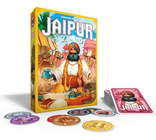 Jaipur es un clásico de juegos de mesa para dos jugadores, rápido y táctico, donde te conviertes en uno de los dos mercaderes más influyentes de la ciudad. Tu objetivo es obtener la mayor riqueza al comprar, intercambiar y vender mercancías (telas, especias, cuero, plata, oro y diamantes) antes de que el mercado se agote.